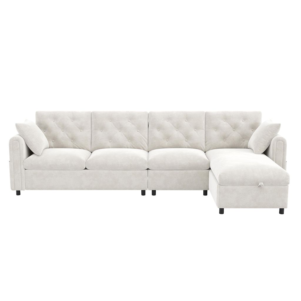 Canapé d'angle réversible fixe 4 places velours coffre de rangement