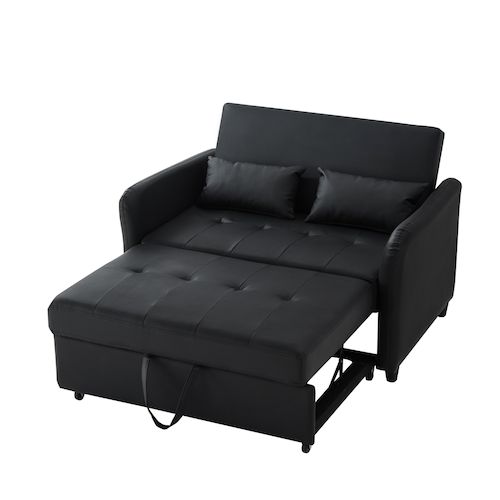 Canapé droit convertible 2 places pu noir