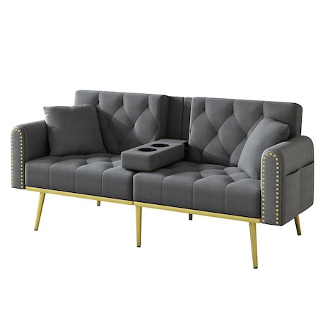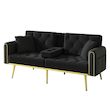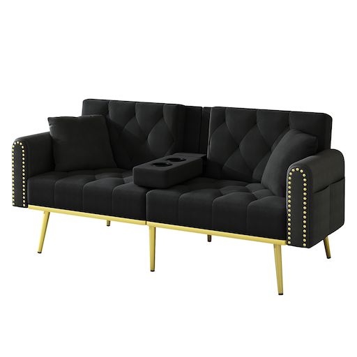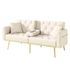 Confort optimal : Son revêtement en velours doux et délicat procure une sensation agréable au toucher. Associé aux pieds en métal doré, il confère au canapé une touche d'élégance luxueuse. Le rembourrage en mousse haute densité et indéformable offre une assise confortable et un soutien optimal, même lors d'utilisations prolongées.