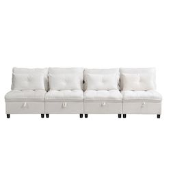 [Un canapé = N scénarios d'application] Transformation intelligente : 4 modules indépendants offrent diverses possibilités de combinaison – réalisable en canapé long 4 places / 2 causeuses / 1 lit convertible / ensemble de sièges individuel créatif. S'adapte à divers besoins, comme les réunions, les séjours d'une nuit ou les déménagements.