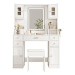 Beaucoup d'espace de rangement : c'est la combinaison parfaite d'une coiffeuse et d'une armoire à bijoux avec 6 tiroirs et 4 portes dans lesquelles les cosmétiques et les parfums peuvent être placés et rangés soigneusement.
