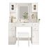Conçu pour la durabilité : la coiffeuse est un meuble durable fabriqué à partir de panneaux de particules E1 de haute qualité pour une résistance et une stabilité exceptionnelles. Le plateau de table résistant à l'usure est non seulement facile à nettoyer, mais garantit également une longue durée de vie. De plus, le dispositif anti-basculement inclus offre une sécurité supplémentaire en fixant le bureau au mur.