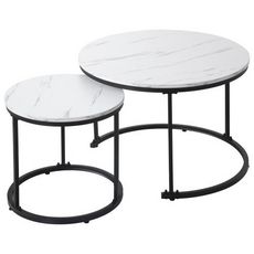 Ensemble De 2 Tables Basses Rondes Avec Cadre En Métal Et Plateau En Panneaux Placage Marbre Blanc