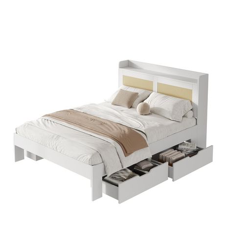 Quatre grands tiroirs avec un grand espace de rangement - deux tiroirs à gauche et à droite sous le lit, qui peuvent facilement ranger des vêtements de saison, de la literie, etc., gardant la chambre propre et bien rangée et libérant plus d'espace.