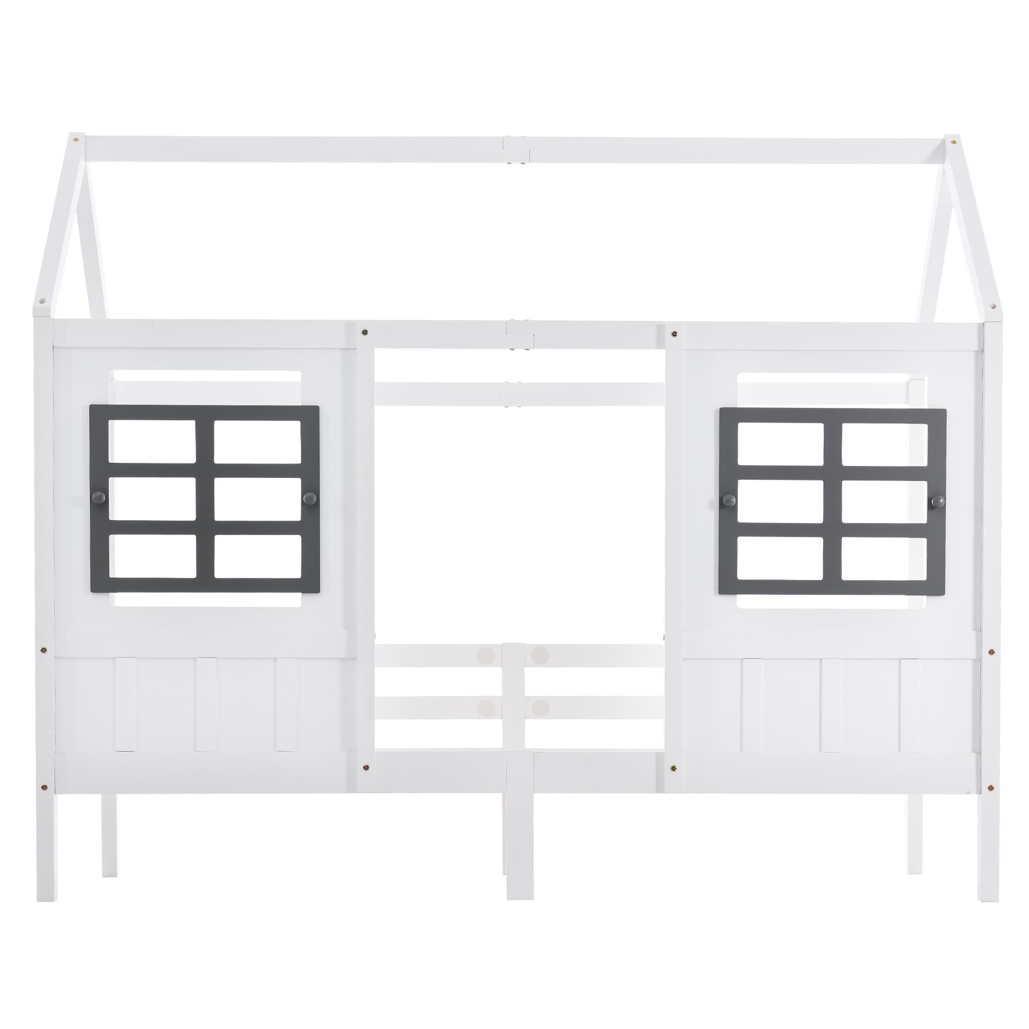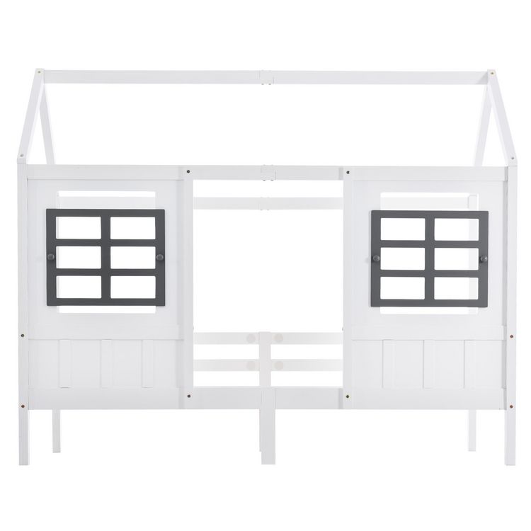 Une forme de double fenêtre amusante : l'avant du lit est équipé de fenêtres en Panneau composite de fibres de bois à densité des deux côtés, qui empêchent les enfants de tomber et sont esthétiques en même temps. Les cadres de fenêtres en treillis gris avec de fins boutons ajoutent à la beauté des fenêtres.