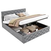 Lit coffre rembourré 140x200cm velours coloris gris