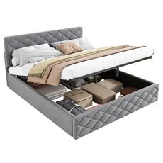 Avec espace de rangement : Le cadre de lit est équipé d'un espace de rangement, optimisant l'espace sous le lit et offrant un espace de rangement supplémentaire. Cette conception permet d'organiser la literie, les vêtements et autres objets pour une chambre plus ordonnée et organisée.