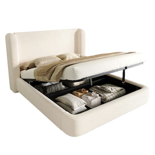 Rangement pratique et performant : Ce lit dispose d'un espace de rangement performant. Vous pouvez l'ouvrir à l'aide d'un levier hydraulique. Le coffre de lit peut contenir vos objets du quotidien tels que des boîtes, des couvertures, des vêtements, etc.