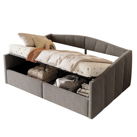 Avec rangement hydraulique - Ce canapé-lit rembourré dispose d'un grand espace de rangement dissimulé sous le lit pour vos vêtements et autres objets essentiels. Il est idéal pour vos besoins quotidiens de rangement et d'organisation.