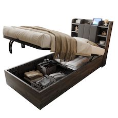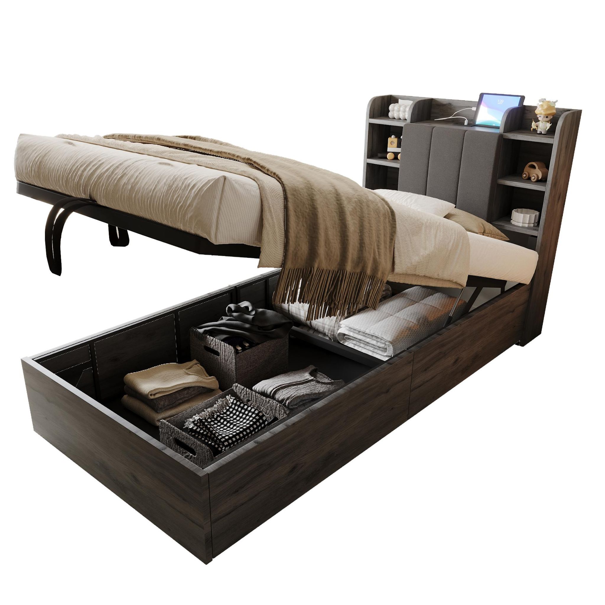 Fonction de rangement hydraulique : Ce lit simple est doté d'une conception hydraulique permettant d'optimiser l'espace. Vêtements, literie et autres objets peuvent être rangés sous le lit. (Avant utilisation, le matelas doit être placé dessus, puis rabattu.)