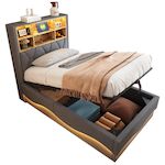 Concept de rangement intelligent : Le lit dispose d'un compartiment de rangement ouvert en tête de lit pour les livres, les jouets ou les objets de chevet, optimisant ainsi l'espace. Le lit est équipé d'un mécanisme de levage hydraulique qui facilite l'ouverture du spacieux compartiment de rangement sous le lit, idéal pour ranger la literie, les jouets ou les vêtements de saison, et permet de gagner de la place dans la chambre de l'enfant.