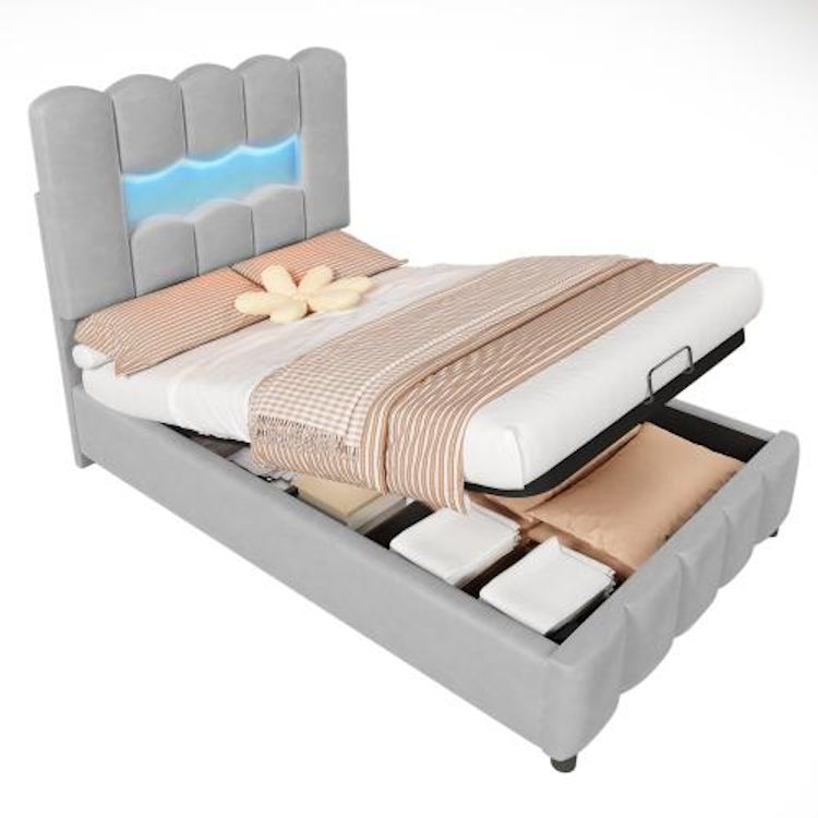 Grand espace de rangement : Équipé d'un système de rangement hydraulique à ouverture facile, il offre un espace de rangement extra-large pour les vêtements de saison, la literie et autres articles, pour une chambre propre et bien rangée.