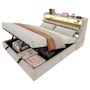 Lit moderne et intelligent avec rangement – Ce lit capitonné est équipé d'une bande lumineuse LED à la tête de lit, contrôlable via une application pour smartphone, pour une ambiance agréable et un confort accru. Le coffre de rangement hydraulique dissimulé sous le lit offre un espace généreux pour la literie et autres essentiels, pour un rangement pratique et organisé.