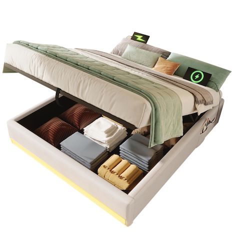 Rangement hydraulique, gain de place : Conception unique de rangement hydraulique, pour un rangement facile de la literie et des vêtements, gain de place et une chambre propre et bien rangée, même dans les petits espaces !
