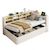 Vaste espace de rangement - Ce lit rembourré est équipé de plusieurs compartiments de rangement latéraux, offrant un grand espace de rangement pour garder votre chambre bien rangée et vos affaires organisées. La couleur bois des compartiments est assortie à celle du tissu, offrant un rangement pratique et élégant.