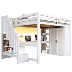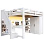 [Design multifonctionnel] Ce lit mezzanine combine bureau, étagères, escalier et penderie. Il offre un espace de travail ou d'étude ainsi qu'un grand volume de rangement.