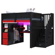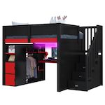 [Nombreux rangements] Ce lit mezzanine est doté d'une penderie ouverte, idéale pour ranger vêtements, jouets ou livres.