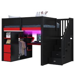 [Espace de travail et éclairage LED] Le bureau sert non seulement de couchage, mais aussi d'outil pratique pour étudier ou se détendre. L'éclairage LED illumine l'espace sous le lit, créant une ambiance agréable dans la chambre.