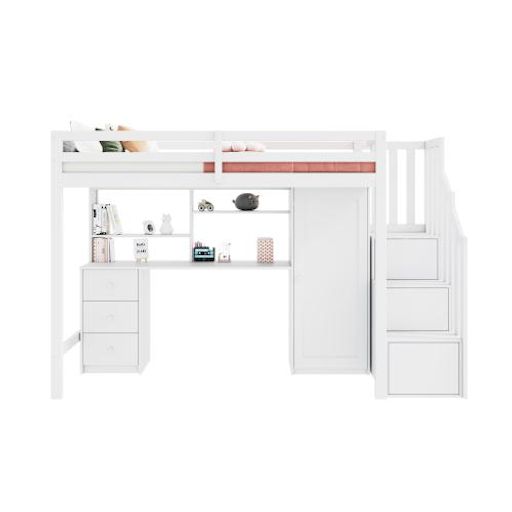 Gain de place : Le lit superposé intègre un lit, un bureau, une armoire et un espace de rangement, ce qui permet de gagner beaucoup d'espace dans la chambre. Ce design est particulièrement pratique pour les petites familles ou les enfants ayant une petite chambre.