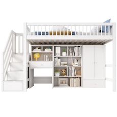 GAIN DE PLACE : Ce lit est équipé d'un bureau, de tiroirs, d'une armoire et d'un placard. L'escalier peut également servir de rangement, offrant un espace généreux et une utilisation optimale de la pièce. Les enfants disposent ainsi de suffisamment de place pour ranger leurs jouets, livres, vêtements et autres affaires, pour une chambre propre et rangée.