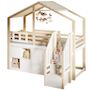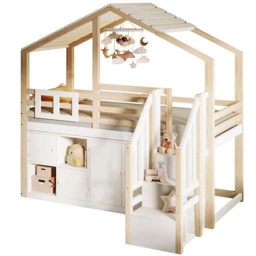 Un design féérique : Le toit en pente et la structure en bois créent un espace chaleureux et douillet, digne d'un conte de fées. Ce design stimule l'imagination des enfants et transforme le sommeil et le jeu en moments de joie, comblant ainsi leur soif de jeu.