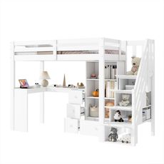Grand espace de rangement, bien rangé : Équipé de plusieurs tiroirs, d'armoires ouvertes et d'étagères pour répondre aux différents besoins de rangement de l'enfant, afin que la chambre soit propre et bien rangée.
