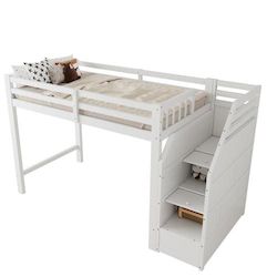 Lit combiné enfant 90x200 cm coloris blanc pin
