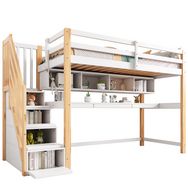 Lit combiné enfant 90x200cm bois coloris blanc+naturel