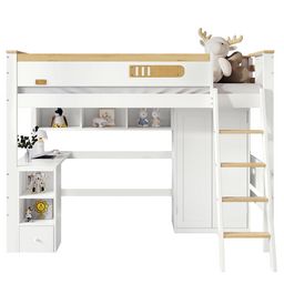 Caractéristiques supplémentaires : Le lit est équipé d'une table et d'une armoire intégrées, offrant une fonctionnalité supplémentaire. Il intègre trois espaces fonctionnels : un espace nuit, un espace de rangement et un espace bureau.