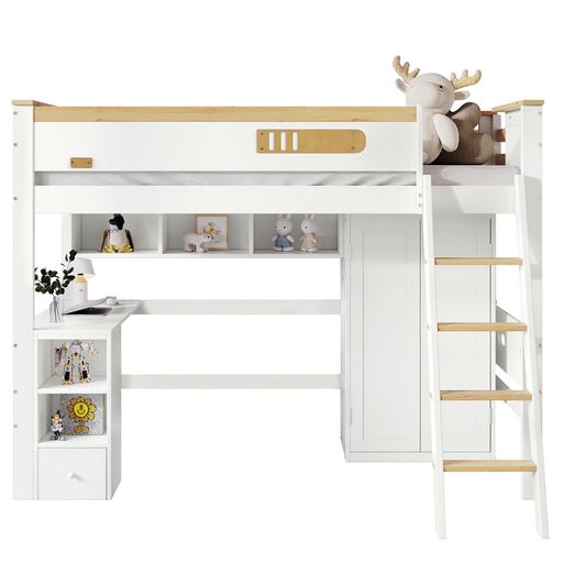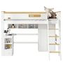 Lit combiné enfant 90x200cm bois et mdf coloris blanc+naturel