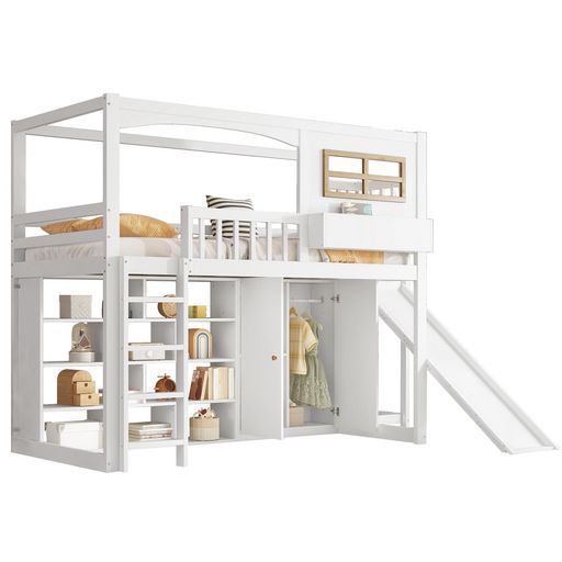 Toboggan et étagères intégrés : Le toboggan latéral offre aux enfants davantage de divertissement et d'activités. L'étagère intégrée offre un rangement pratique pour les livres, les jouets et autres objets à portée de main.