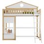 Lit combiné enfant 90x200cm coloris blanc+naturel bois massif