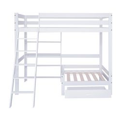 [Construction solide] Le lit superposé est fait de bois massif robuste et de bois Panneau composite de fibres de bois à densité. La protection de clôture à quatre côtés du lit supérieur et le cadre en pin robuste garantissent une construction solide et une durabilité. L'échelle inclinée a été conçue dans un souci de sécurité et offre un accès fiable vers et depuis le lit.