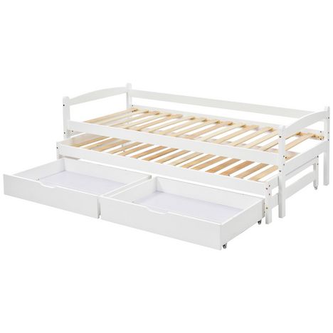 Lit gigogne 90x200(90x190)cm bois coloris blanc