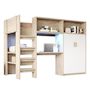Lit mezzanine multifonctionnel gain de place – Ce lit mezzanine en bois offre un espace de couchage à l'étage supérieur, tandis que l'étage inférieur intègre astucieusement un bureau, une penderie et des rangements. Il permet un gain de place précieux tout en offrant des espaces de vie et d'activités polyvalents, adaptés à différents besoins.