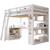 Rangement et organisation pratiques : Équipé d'une étagère pratique pour les livres, les jouets ou les petits objets, ainsi que d'une toile en feutre pour suspendre les objets, garantissant organisation et accessibilité.Sécurité : Avec une barrière de sécurité et une échelle inclinée robuste pour un