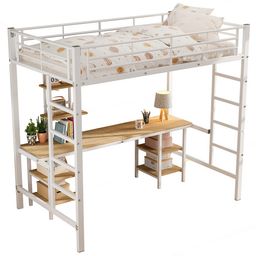 Conception polyvalente : le lit superposé a un design unique. L'étage inférieur est un espace de travail et de divertissement, doté d'une table et de plusieurs étagères. Cette construction multifonctionnelle maximise l'espace disponible dans la chambre des enfants tout en offrant une solution pratique pour diverses activités.