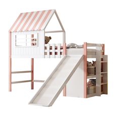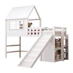 Conception toboggan - Ce lit mezzanine est équipé d'un toboggan allongé pour des glissades encore plus amusantes et plus longues. Une échelle droite à larges marches est située sur le côté du lit pour permettre aux enfants d'y monter en toute sécurité.