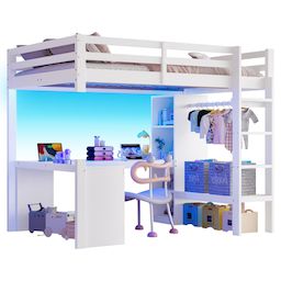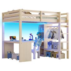 [Bureau intégré] Ce lit mezzanine est doté d'un bureau intégré qui ajoute du confort à votre chambre et peut servir de bureau ou de poste de travail, idéal pour les petits espaces.