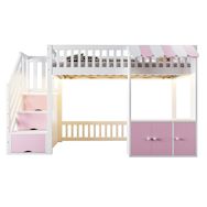 Lit mezzanine avec escalier et rangements intégrés – Ce lit mezzanine est doté d'un escalier intégrant trois compartiments de rangement, offrant un espace pratique pour ranger livres, jouets, vêtements et autres objets. Il optimise ainsi l'espace de la chambre et simplifie son organisation.