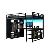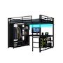 [Éclairage LED et station de recharge] L'étagère au-dessus du bureau est équipée de LED dont la couleur est modifiable via une application Bluetooth. Combiné à la station de recharge intégrée au bureau, ce lit offre un espace de travail ou de divertissement confortable.