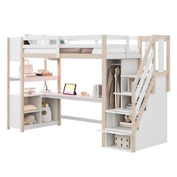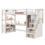 Escalier avec rangements intégrés – Ce lit mezzanine est équipé d'un escalier avec quatre compartiments de rangement, permettant de ranger facilement livres, jouets, vêtements et autres objets, optimisant ainsi l'espace de la chambre et simplifiant l'organisation.