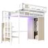 Armoire intégrée – Ce lit mezzanine en métal dispose d'une spacieuse armoire à portes coulissantes sur un côté, équipée d'une tringle pour un rangement optimal des vêtements.