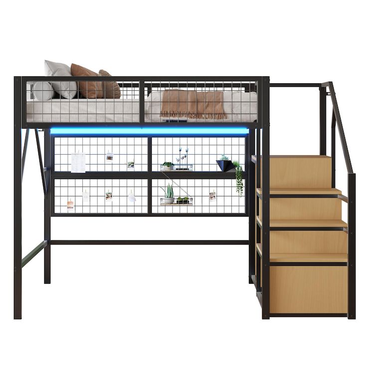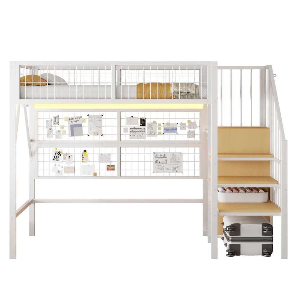LIT ROBUSTE ET DURABLE : Ce lit mezzanine en métal de haute qualité garantit stabilité et sécurité, offrant un confort durable au quotidien.