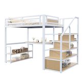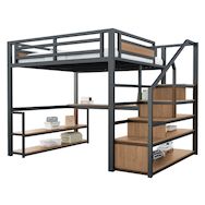 Avec étagères et design de table - Ce loft en métal sous le lit avec table et étagères offre un espace supplémentaire pour l'aménagement et l'étude.