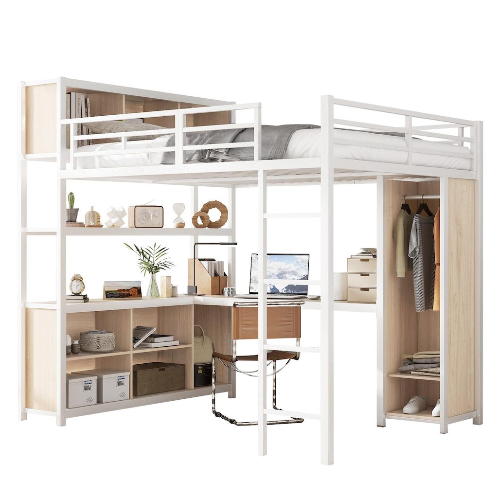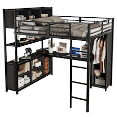 Lit supérieur avec rangement et penderie intégrée : Le lit supérieur offre un espace de rangement supplémentaire pour la literie ou les peluches , l'armoire intégrée offre de l'espace pour les vêtements et les accessoires.