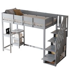 Rangement pratique : Le lit est équipé d'un escalier robuste qui sert également de rangement, vous offrant ainsi plus d'espace pour vos effets personnels.