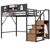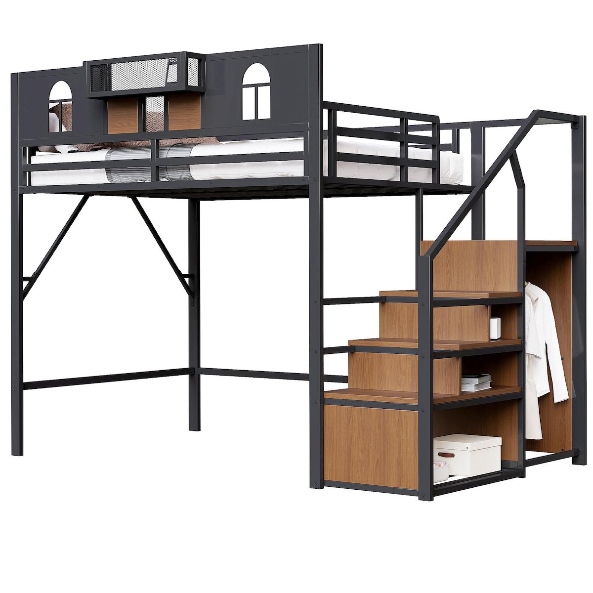Rangement intégré – Ce lit mezzanine en métal est doté d'une étagère de rangement pratique au bord du lit pour garder livres, téléphone et autres objets essentiels à portée de main.