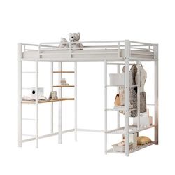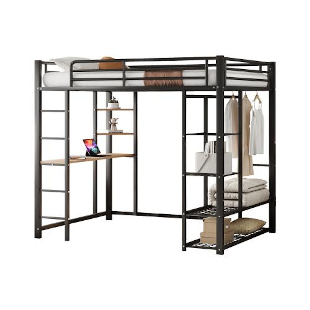 Lit mezzanine multifonctionnel - Ce lit mezzanine simple combine des fonctions de couchage, de travail et de rangement pour tirer le meilleur parti de l'espace de la pièce. De plus, la finition simple en métal complète le style de n'importe quelle pièce, lui donnant une touche moderne et lumineuse.