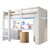 Solution de rangement complète : Le côté droit du bureau comprend une armoire intégrée et un grand compartiment de rangement ouvert, tandis que le côté gauche est équipé d'un meuble à trois tiroirs. Le plateau est réglable en hauteur, offrant plusieurs niveaux avec des compartiments séparés pour ranger vêtements, fournitures scolaires et objets de décoration. Ainsi, chaque chose a sa place et la chambre des enfants reste impeccable.